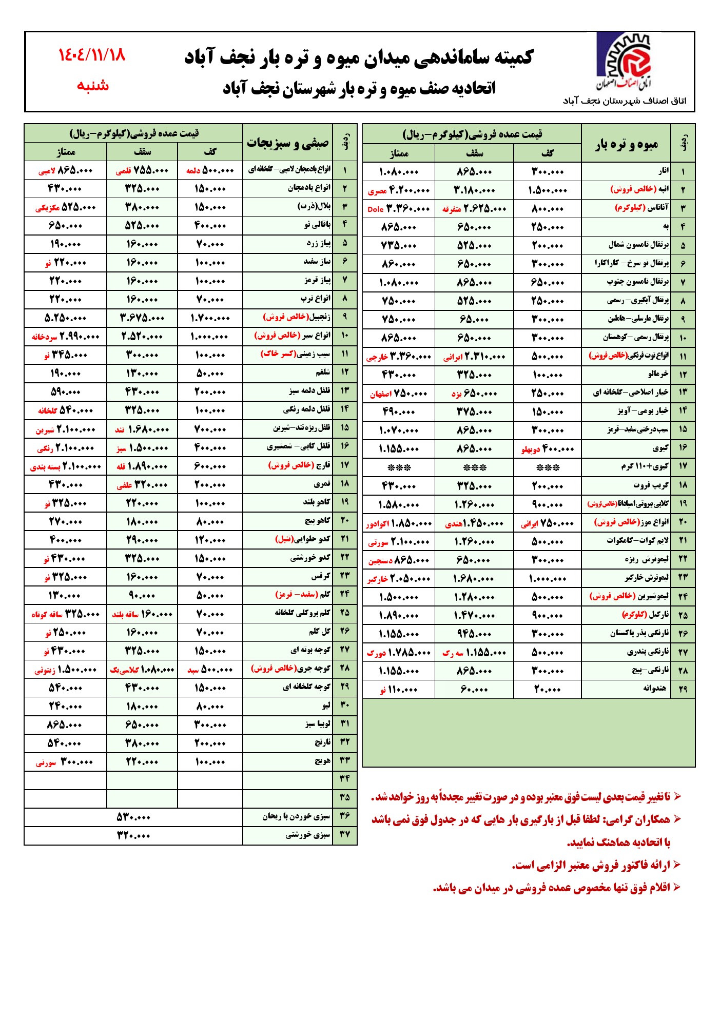 اتحادیه میدان میوه و تره بار شهرستان نجف آباد